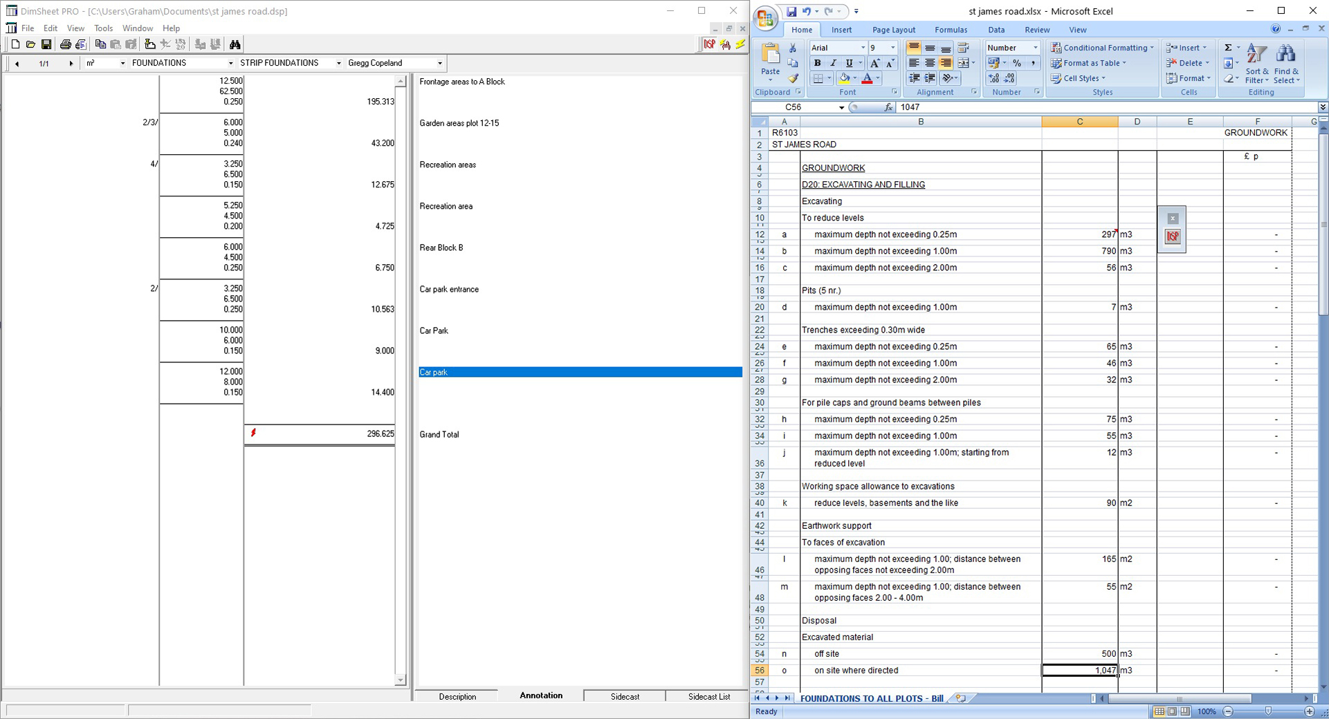 Using traditional style dimsheets, users are presented with a screen based version of their trusted and understood paper dimsheets. Immediately recognisable by all users, DimSheet-Pro™ offers all the usual tools associated with paper techniques including timesing, annotation and anding-on but with the additional power only a Windows based computer system can offer. All dimensions can be ‘linked’ offering the user the ability to construct complex take-offs with a ‘change one changes all’ type structure. Imagine being able to change the centreline measurement and see Dimsheet-Pro™ instantly adjusts all your associated take-off - and then adjust your spreadsheets! It’s not a dream but a reality. All this within a cheap package that offers an industry standard presentation makes DimSheet-Pro™ a cost effective must have.
